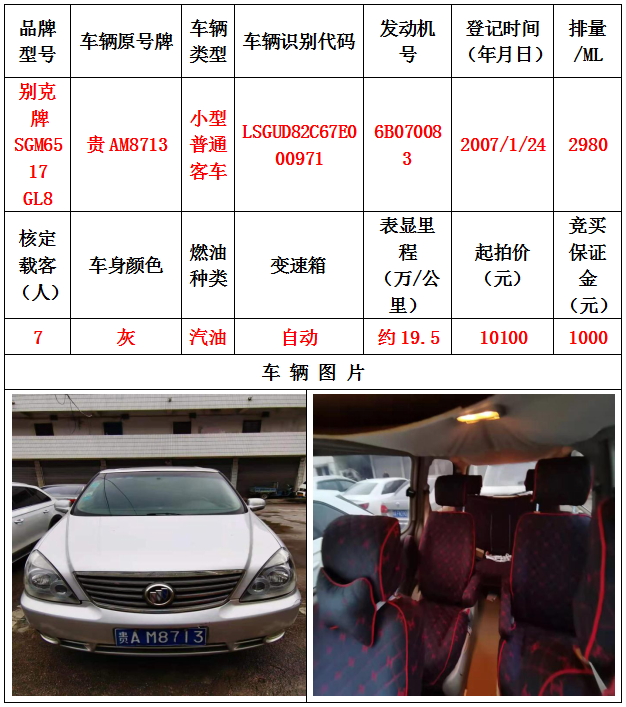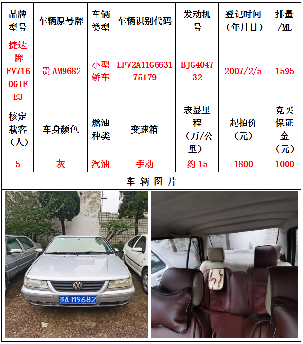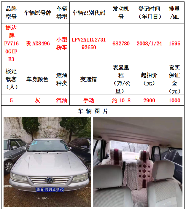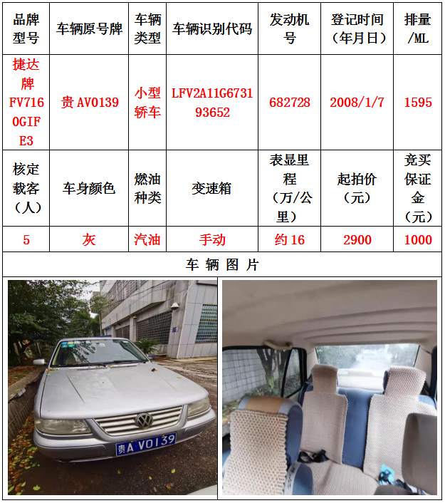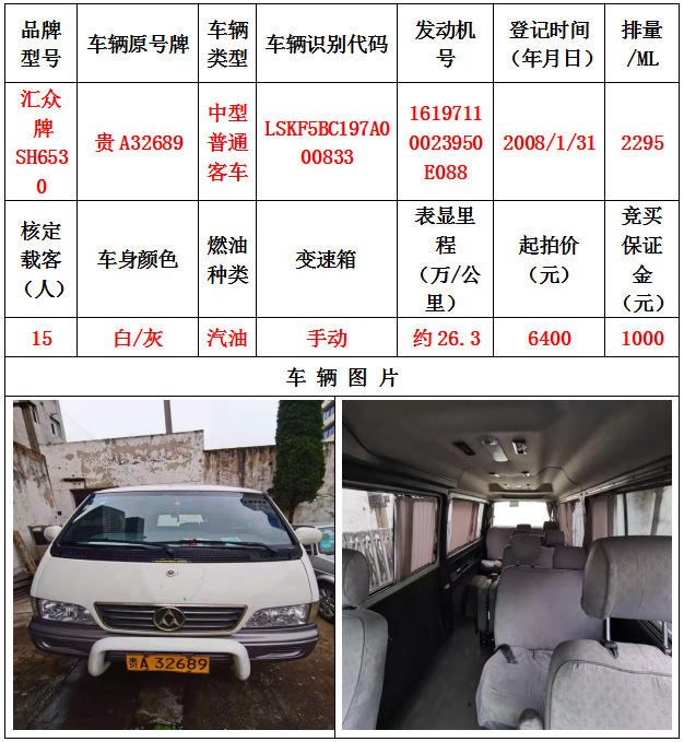 本次拍賣會拍賣的車輛共計10輛車,分別為帕薩特牌SVWZ183LJI小型轎車一輛、匯眾牌SH6530中型普通客車一輛、別克牌SGM6517小型普通客車一輛、別克牌SGM7161LE小型轎車一輛、寶來牌BORA1.6小型轎車一輛、捷達牌FV7160GiFE3小型轎車五輛(詳情見下文),為打包整體拍賣,不作拆分,整體起拍價:33900元,且只對標的現(xiàn)狀進行拍賣,不作任何質(zhì)量擔保。