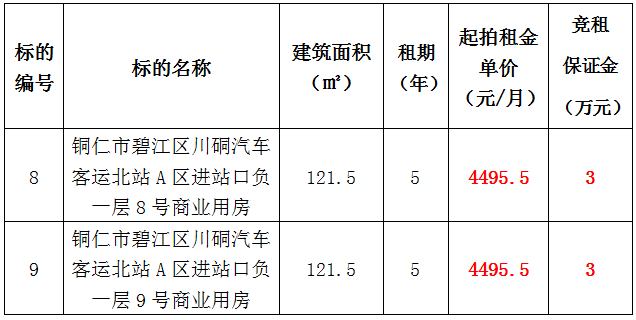 8、銅仁市碧江區(qū)川硐汽車客運北站A區(qū)進站口負一層8號門面,面積:121.5㎡,租賃期:5年,起拍租金:4495.5元/月,競租保證金:3萬元;