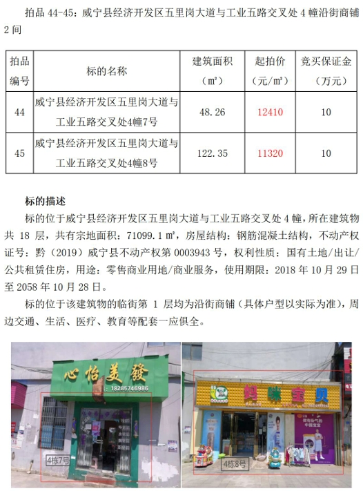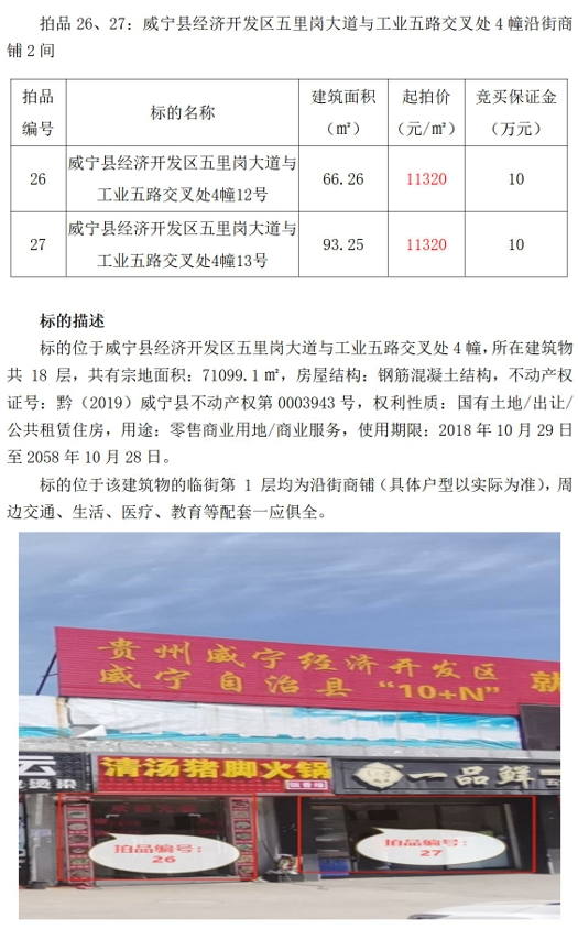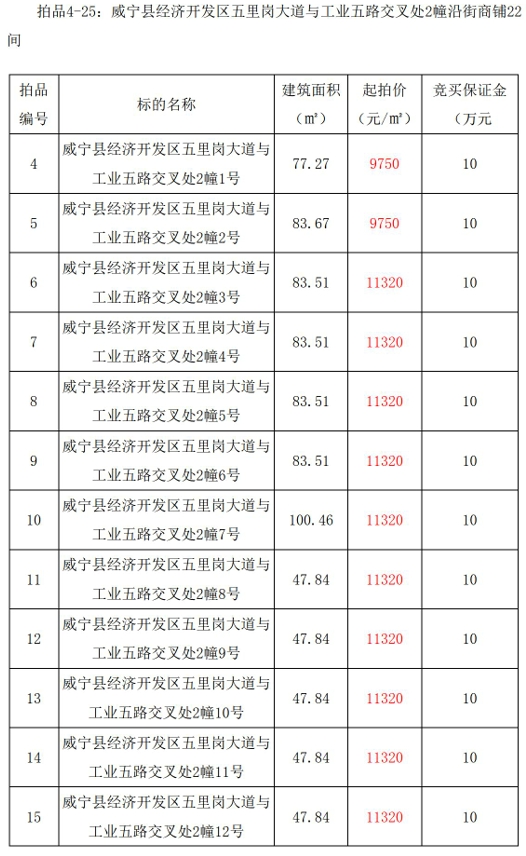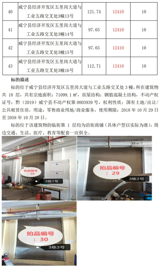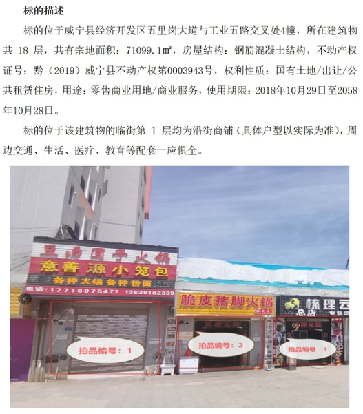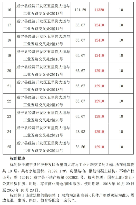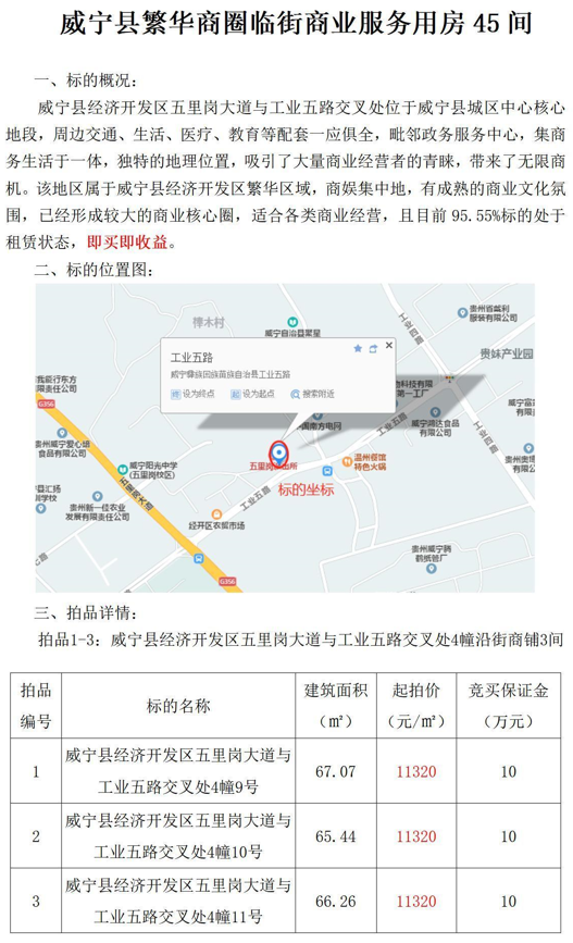 (一)威寧縣經(jīng)濟(jì)開(kāi)發(fā)區(qū)五里崗大道與工業(yè)五路交叉處公租房4幢沿街商鋪3間,建筑面積:65.44㎡-67.07㎡。
