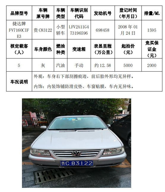 本次拍賣會的拍賣標(biāo)的(拍品編號1-5共計(jì)5輛車),分別為桑塔納牌、捷達(dá)牌、昊銳牌、獵豹牌,為打包整體拍賣,不作拆分,整體起拍價(jià):77200元,且只對標(biāo)的現(xiàn)狀進(jìn)行拍賣,不作任何質(zhì)量擔(dān)保。