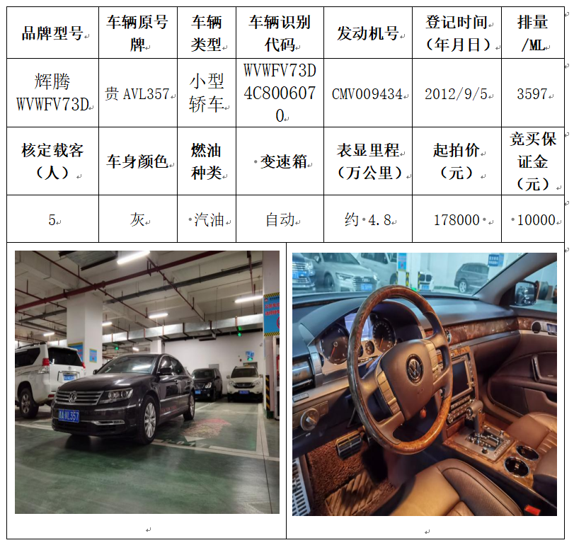 拍品編號(hào)1:輝騰WVWFV73D小型轎車一輛