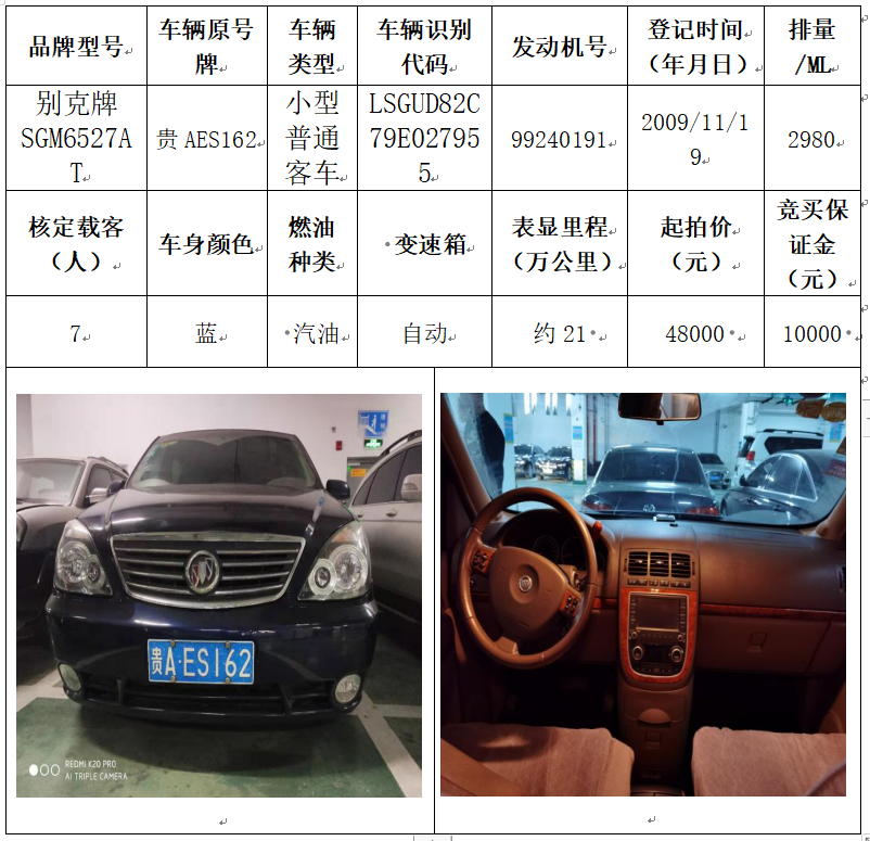 拍品編號(hào)4:別克牌SGM6527AT小型普通客車一輛