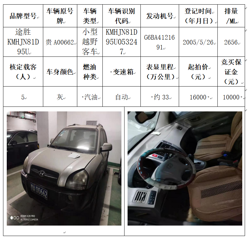 拍品編號(hào)5:途勝KMHJN81D95U小型越野客車一輛