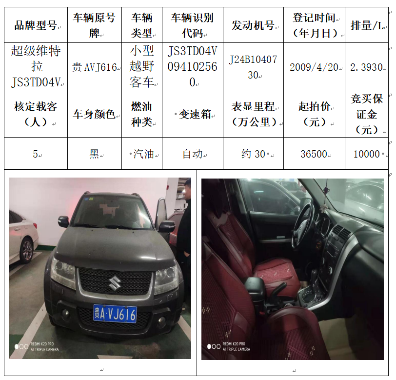 拍品編號(hào)7:超級(jí)維特拉JS3TD04V小型越野客車一輛