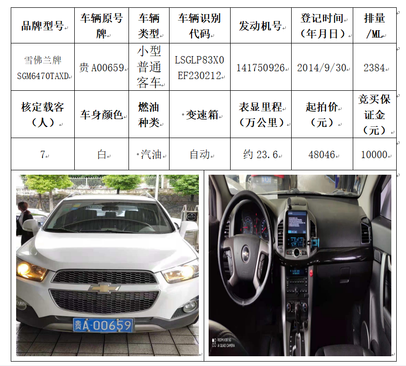 拍品編號(hào)8:雪佛蘭SGM6470TAXD小型普通客車一輛