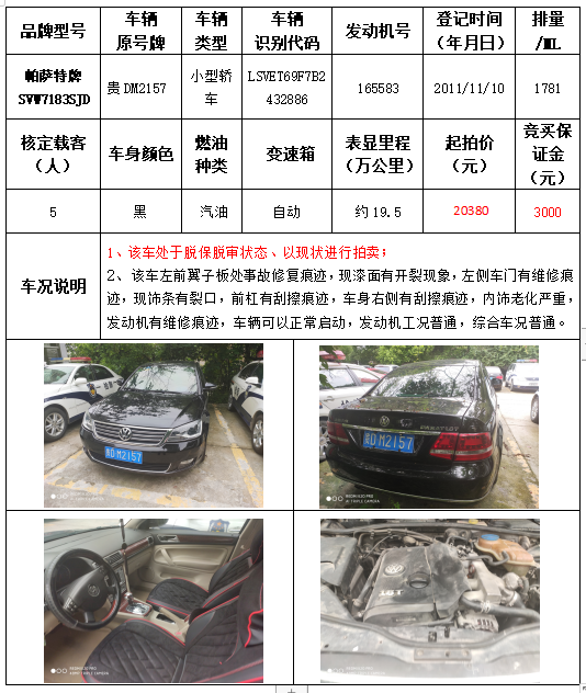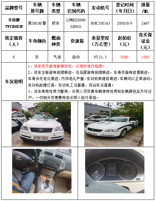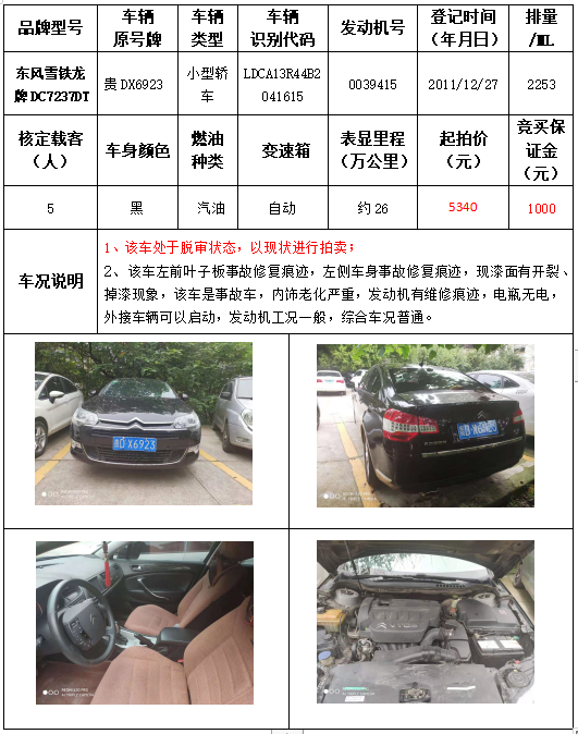 受委托,本公司定于2021年9月16日(星期四)下午14:30時(shí),在銅仁市碧江區(qū)川硐教育園區(qū)誠(chéng)信路銅仁市公共資源交易中心開(kāi)標(biāo)六室(拍賣大廳)公開(kāi)拍賣以下車輛: