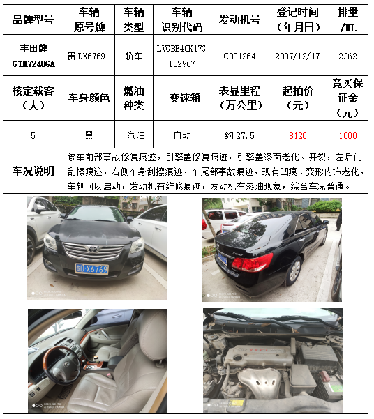 拍品編號(hào)6:豐田牌GTM7240GA轎車一輛