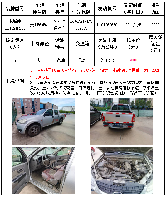 拍品編號(hào)10:長(zhǎng)城牌CC1021PS03輕型普通貨車一輛