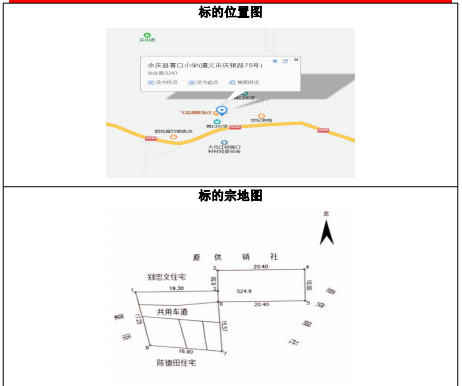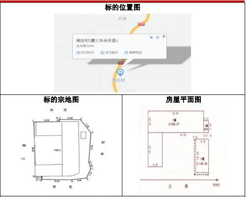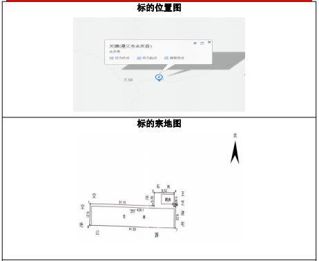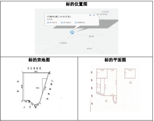 該標(biāo)的位于余慶縣龍溪鎮(zhèn)關(guān)塘村,標(biāo)的建筑物已拆除,證載土地面積:約493.1㎡,土地使用權(quán)性質(zhì):劃拔,土地證載用途:煙葉收購(gòu),土地證號(hào):余國(guó)用(2007)第905號(hào)。