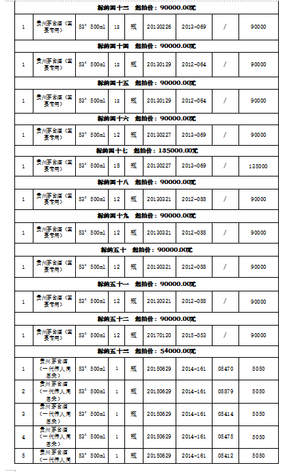 注:本場拍賣標的經(jīng)過貴州茅臺酒股份有限公司鑒定為其公司生產(chǎn)。所有標的按現(xiàn)狀進行拍賣,競買人自行判斷。報名后持報名成功短信進入展示現(xiàn)場看樣,看樣時需提前預約,配合工作人員安排。競價成功的買受人需公示期過后付款提貨。競買人需到現(xiàn)場查驗,如未到現(xiàn)場實地看樣的競買人,視為對本標的實物現(xiàn)狀的確認,責任自負。成交后買受人需向拍賣人另行支付成交價2%的傭金。競買人應于2022年1月13日下午13:20時前入場,遲到視為放棄此次競拍。