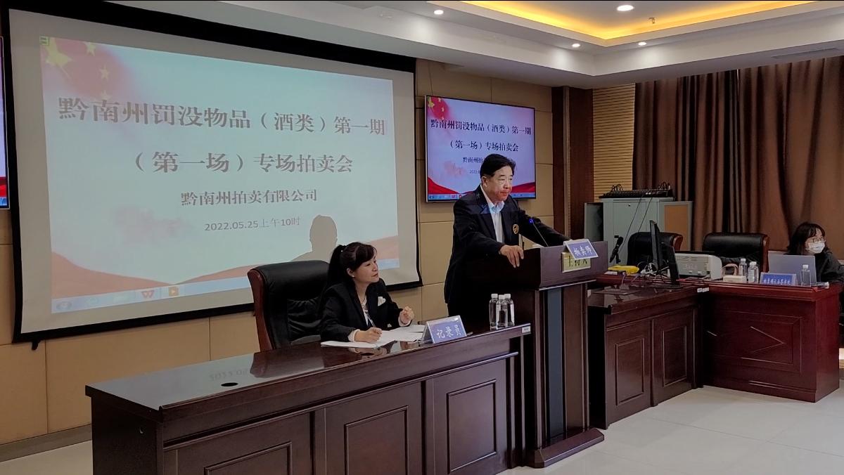 黔南州罰沒(méi)物資(酒類)資產(chǎn)處置工作由黔南州拍賣有限公司分四期完成;第一期茅臺(tái)酒專場(chǎng)拍賣會(huì)采取現(xiàn)場(chǎng)和網(wǎng)絡(luò)相結(jié)合的拍賣方式進(jìn)行,現(xiàn)場(chǎng)拍賣會(huì)于2022年5月25日、5月26日在黔南州公共資源交易中心多能廳舉行。